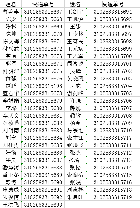 韻達快遞單號如下:
