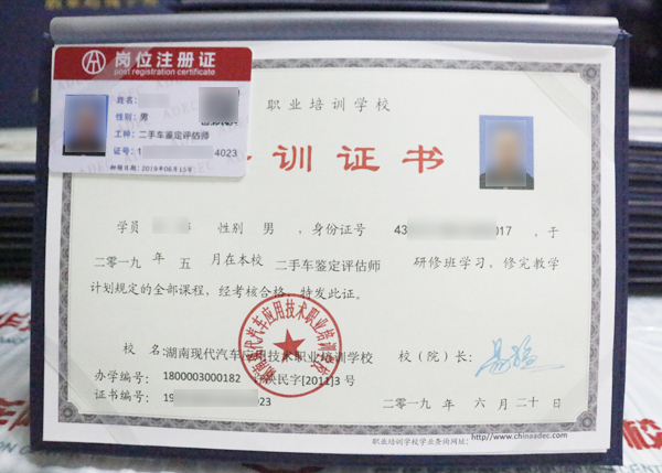 【中華汽車網校 網校新聞】中華汽車網校2019年05月二手車鑒定評估師技能證書順利下發到我校,該技能證書由全國工商聯汽車經銷商商會頒發,證書全國通用。培訓證書由我校即(湖南現代汽車應用技術職業培訓學校)頒發,證書蓋有學校公章,且能在學校官網查詢,我校教務部已對二手車評估師證書進行郵寄,證書在考試后30個工作日可在網上查詢。收到證書后請各位學員認準真偽!證書寄發同時還會寄發崗位注冊證,請各位學員注意查收!(注:如沒有快遞單號的請來校自行領取或聯系教務老師)