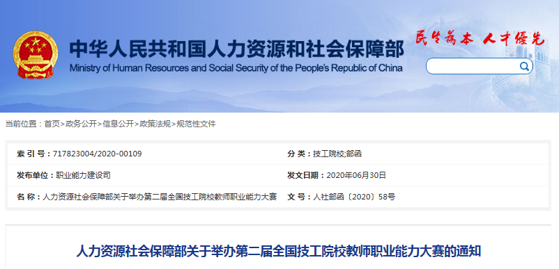 人力資源社會保障部關于舉辦第二屆全國技工院校教師職業能力大賽的通知