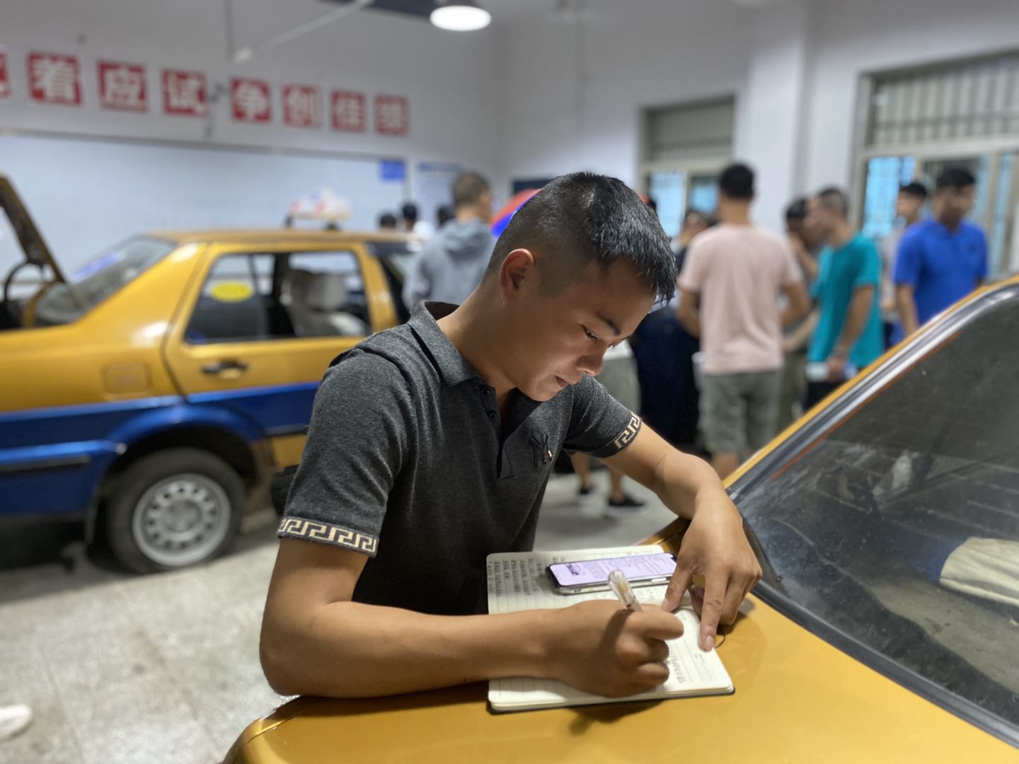 因為梅雨季的來臨,培訓的第四天落起了連綿大雨,讓人意想不到的是,這陰沉的天氣并沒有影響到學員對學習的熱情。對于理論課上不懂的問題,學員們都會爭先向老師提出,甚至在實操課結束后,還有學員趴在事故車上用隨身攜帶的筆記本記錄著一項項車況勘查實操上的問題。