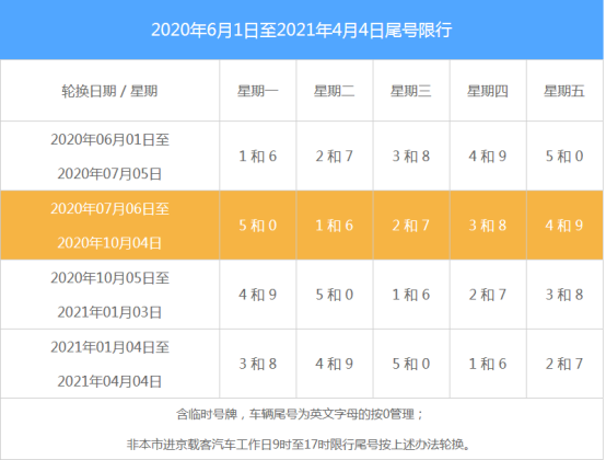 2021年北京機動車車牌尾號限行新規(時間+尾號+路段)