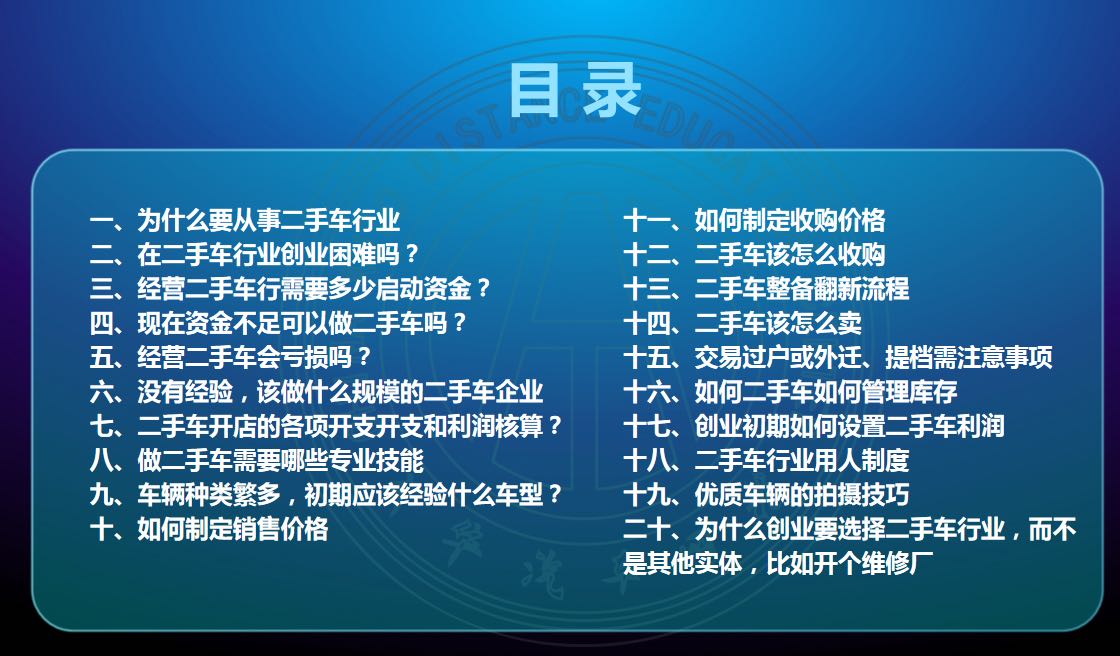 十一月特色課程:二手車行業如何創業