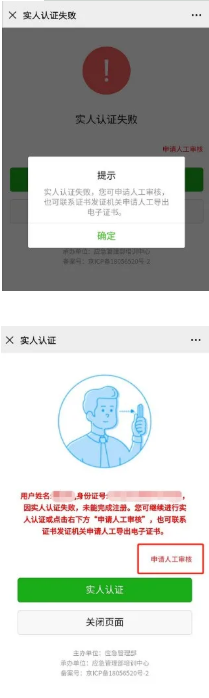 推行新版安全合格證和特種作業操作證之后,實體證書變成電子證書后方便很多,但為什么我申領時會出現實人認證失敗呢?