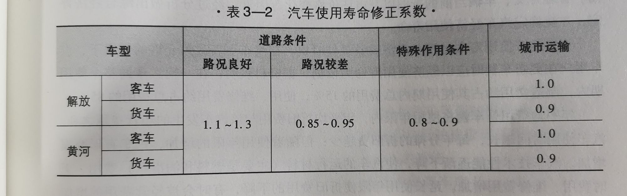 表3-1中的使用年限是按全國年平均行駛里程(貨車4.5 x10* km,客車5 x10km)計算的。我國地域遼闊,汽車技術水平和使用條件不同,車輛使用強度差別很大,因而各地的汽車經濟使用壽命也必然不同。若全國專業運輸車輛平均水平定為1.0,則各地可按表3-2 中的修正系數對表3-1中的年限或里程進行修正。