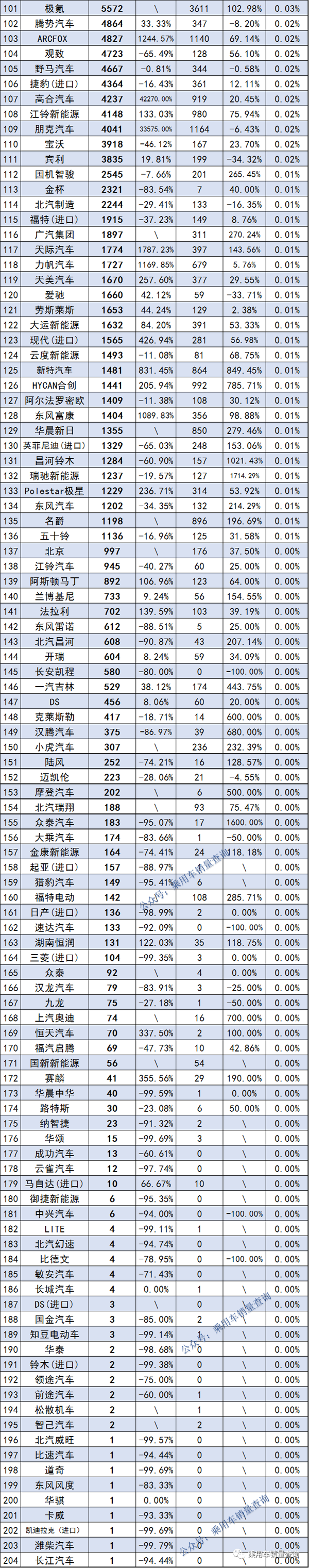 2021年國內乘用車累計銷量為2118.2萬臺,同比去年上升6.2%,12月銷量為227.2萬臺,與去年同期累計相比實現增長的細分品牌為91個,占比44.6%