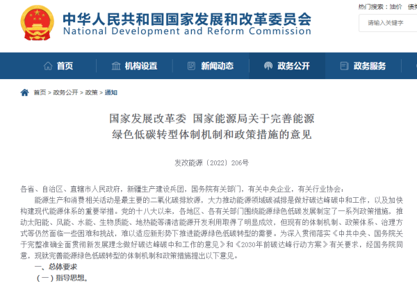 國家發展改(gai)革委(wei) 國家能源局(ju)關(guan)于完善能源綠(lv)色低碳轉型體制機制和政策措施的(de)意(yi)見