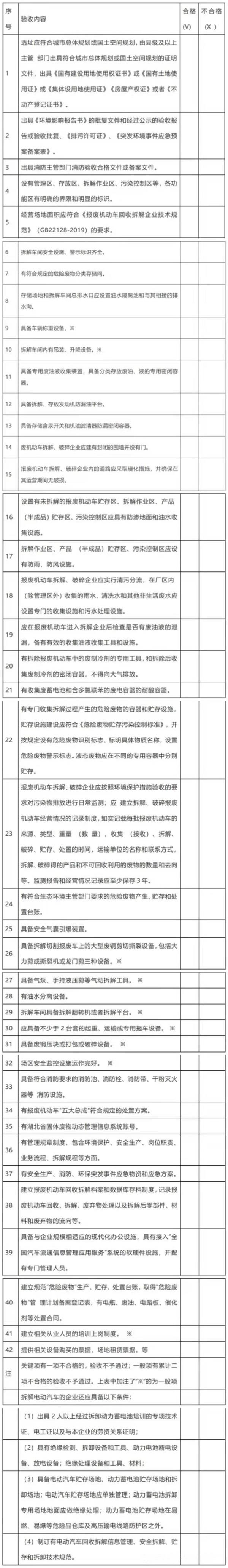 專業技術人員指:經過報廢機動車、新能源電動車拆解培訓取得證書人員,電工、叉車工、安全生產管理員、報廢車回收專業持證人員。