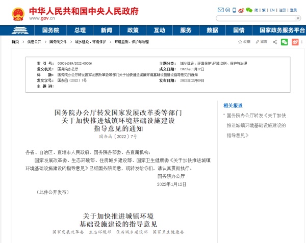 關于加快推進城鎮環境基礎設施建設