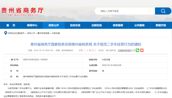 貴州省商務廳國家稅務總局貴州省稅務局 關于規范二手車經營行為的通知