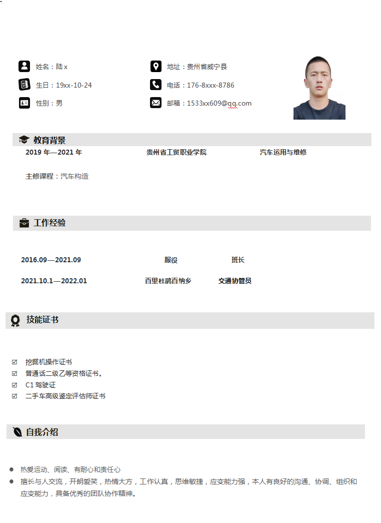 貴州畢節陸先生求職二手車評估師