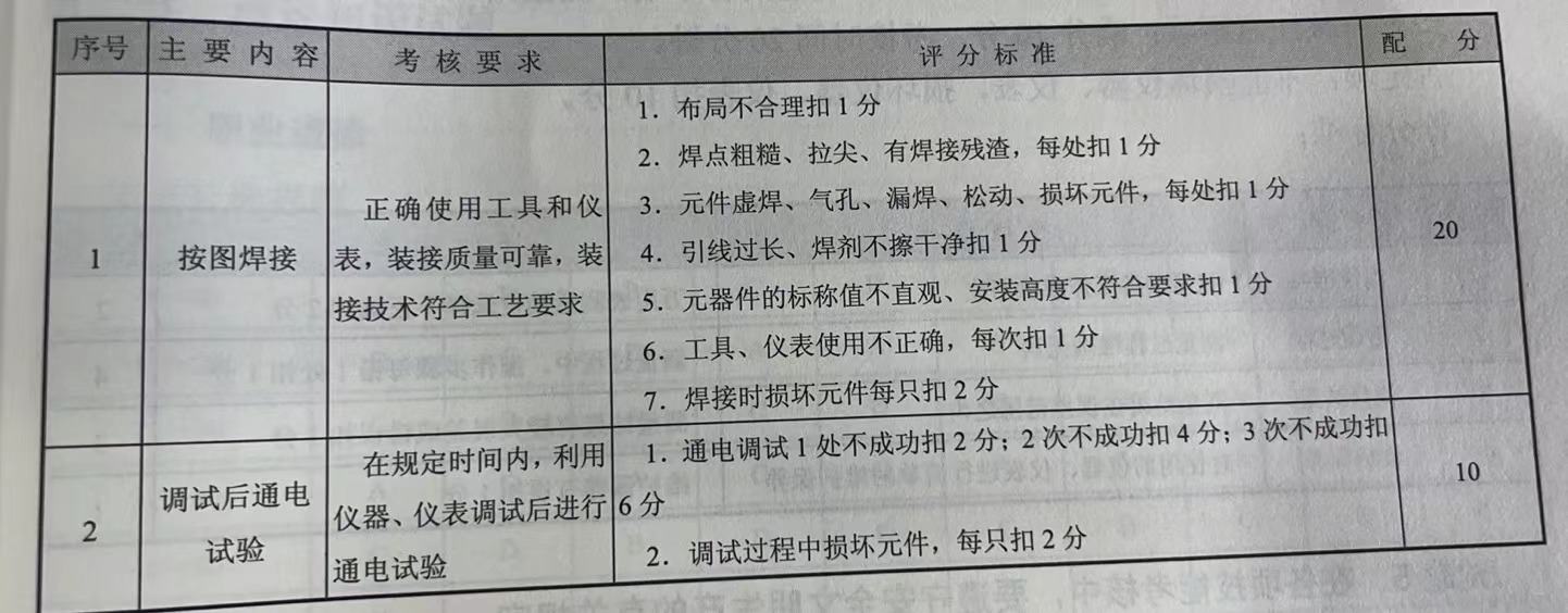(1)接前先檢查元器件的好壞,核對元件數量和規格,如在調試中發現元器件損壞,則按損壞元器件扣分。