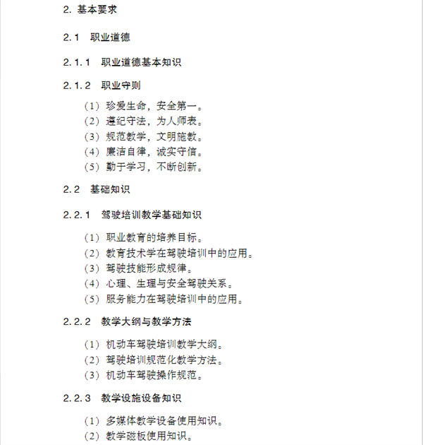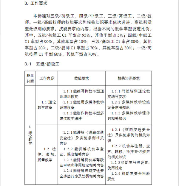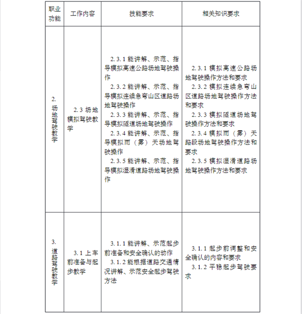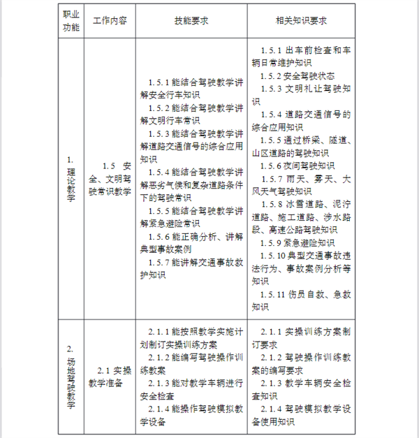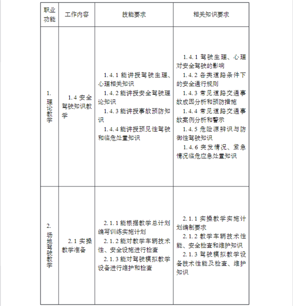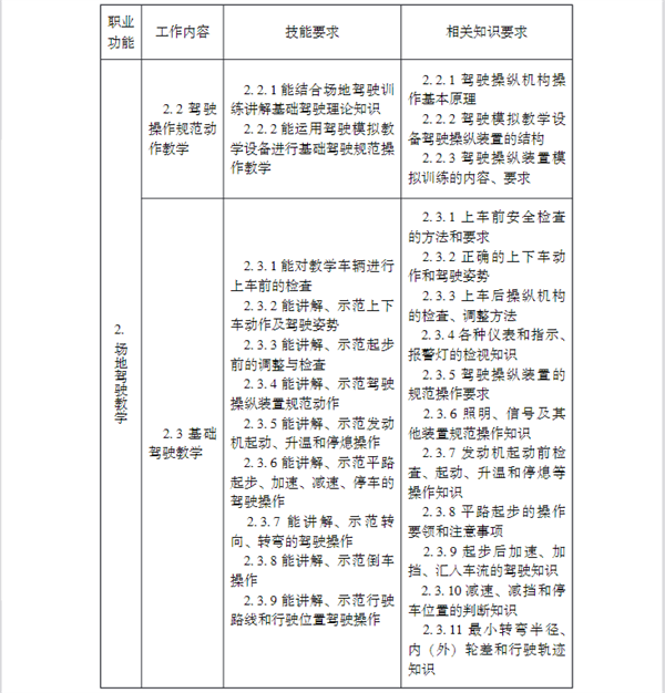 機動車駕駛教練員國家職業技能標準(2018年版)