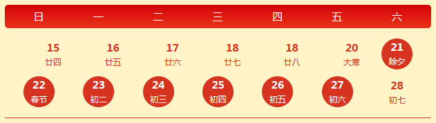根據國務院辦公廳消息,春節放假時間為1月21日-1月27日(共7天)。