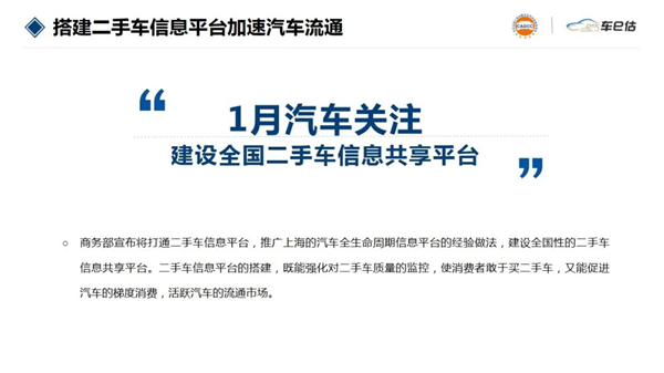 在過去的一年里,國家出臺了多項汽車流通的政策。例如商務部聯合多個部門發布全面取消二手車限制外遷、二手車交易跨省通辦等一系列措施,既豐富了消費者在購買二手車時的可選擇性,使交易手續更加便捷,降低了二手車交易成本。