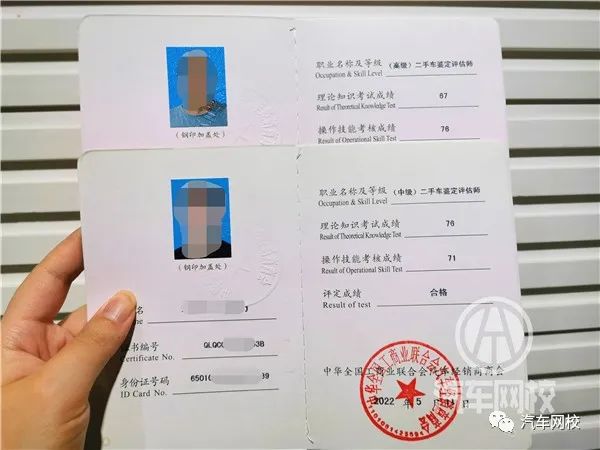 經過培訓考試合格學員可以獲得由全國工商業聯合會汽車經銷商商會頒發的《二手車鑒定評估師專業技能證書》+職業培訓學校頒發的培訓證。