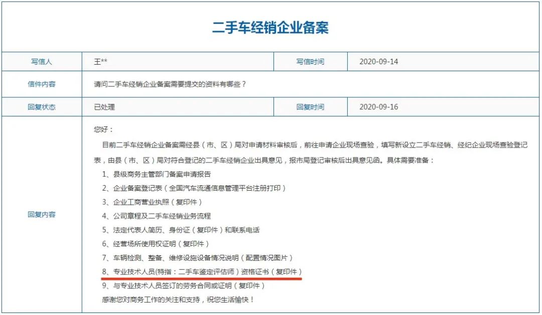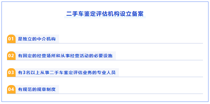 但是二手車新政已經于2023年1月1日正式實施,對個人二手車交易數量進行了限制,因此現在想要開展二手車經銷業務,必須要進行工商登記注冊二手車經銷企業,并且前往商務部門進行備案。而二手車經銷備案政策要求,企業必須有二手車鑒定師證的二手車營銷管理人員才能通過申請。