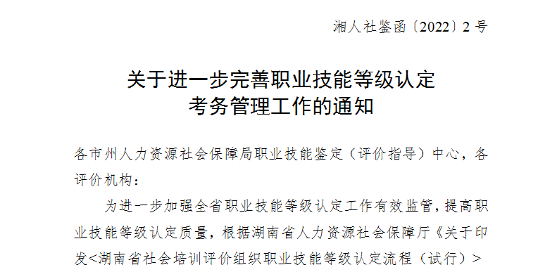 依據《關于進一步完善職業技能等級認定考務管理工作的通知》文件要求,加強全省職業技能等級認定工作有效監管,提高職業技能等級認定質量,具體變化如下: