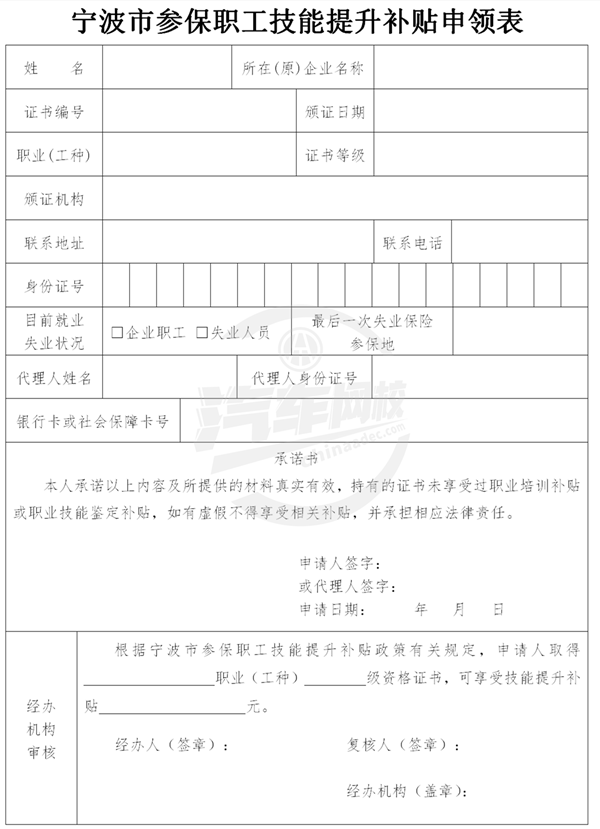 1、申請。符合條件的企業職工應在證書核發之日起12個月內,攜帶居民身份證和證書原件到本人當前失業保險參保地的區(縣、市)失業保險經辦機構申領技能提升補貼,并填寫《寧波市參保職工技能提升補貼申領表》(附件4)。申領時已失業的,到失業前最后一次繳費的失業保險參保地區(縣、市)失業保險經辦機構申領。