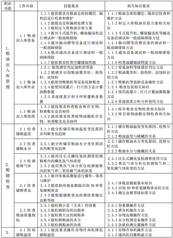 從事糧食、油料及植物油脂(以下簡稱糧油)的入庫、檢查、質量控制、出庫以及相關賬卡處理等倉儲管理工作的人員。