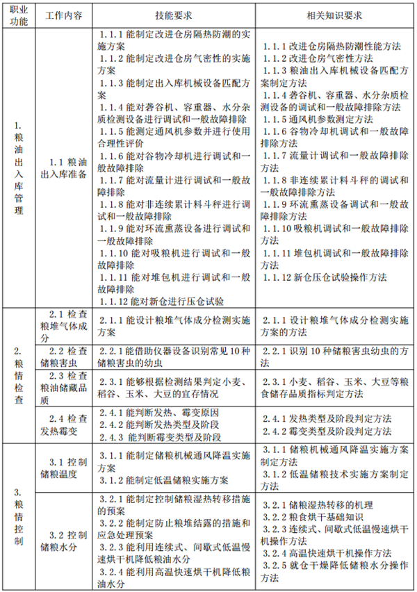 理論知識考試在標準教室進行;技能考核在具有必備的設備、工具與材料、通風條件良好、光線充足和安全措施完善的場所或糧油倉庫進行。
