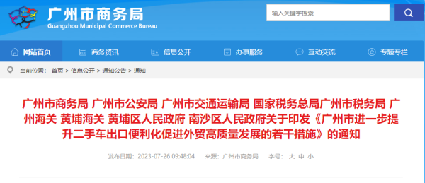 關于印發《廣州市進一步提升二手車出口便利化促進外貿高質量發展的若干措施》的通知