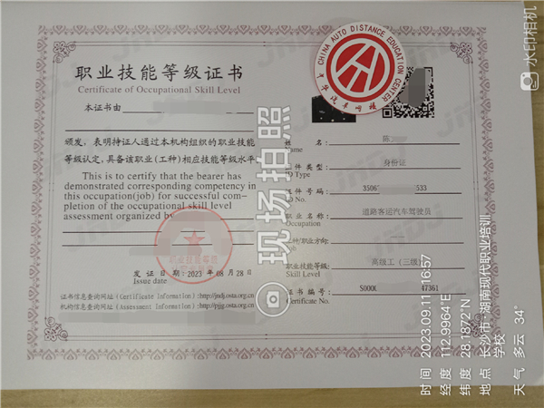 2023年9月汽車駕駛員職業技能等級證書下發通知