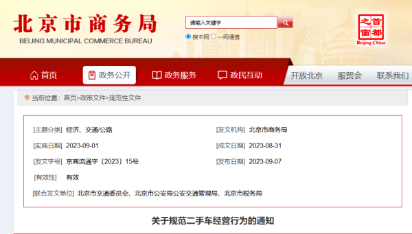 自2023年9月1日起,商務部門負責將重新復核的二手車經銷企業信息,推送至本市小客車指標調控管理機構。小客車指標調控管理機構根據商務部門推送的上述經銷企業信息,做好二手小客車周轉指標的配置工作。二手車經銷企業申請并使用周轉指標后,應按經銷業務開具本公司“二手車銷售統一發票”。