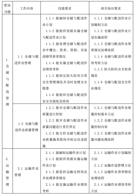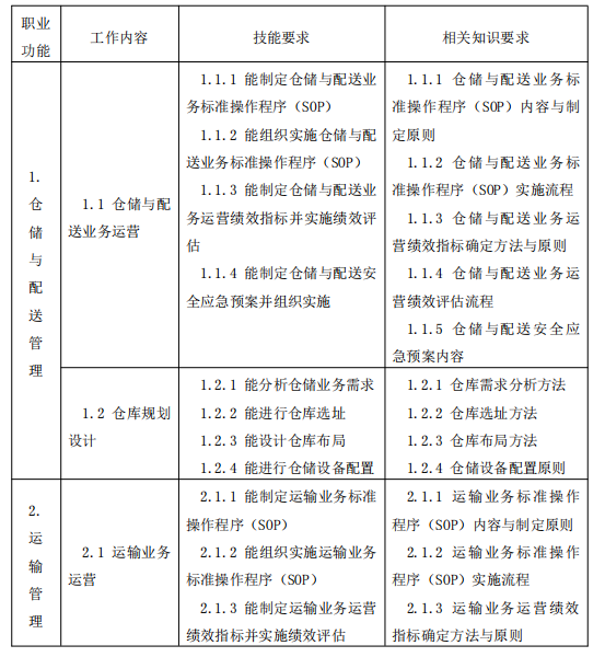 物流服務師職業標準按照三級/高級工、二級/技師、一級/高級技師的技能要求和相關知識要求依次遞進,高級別涵蓋低級別的要求。