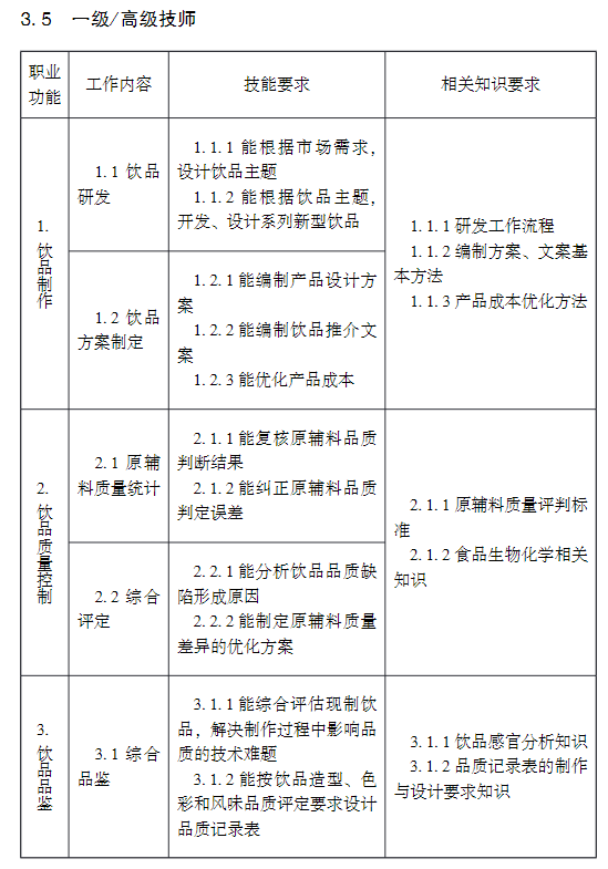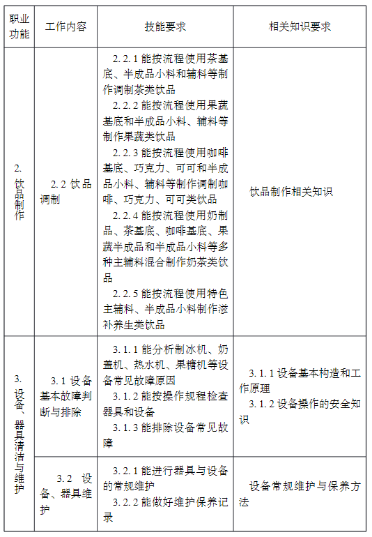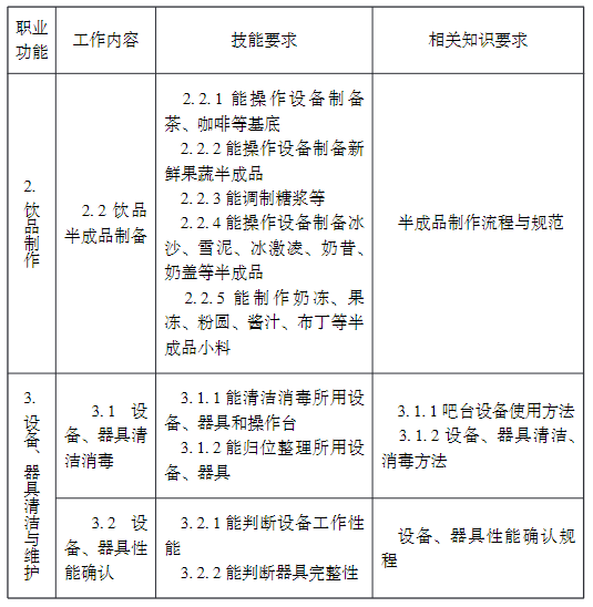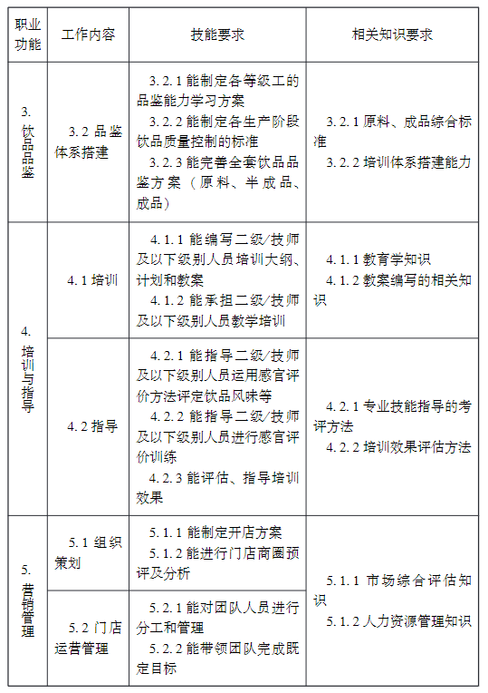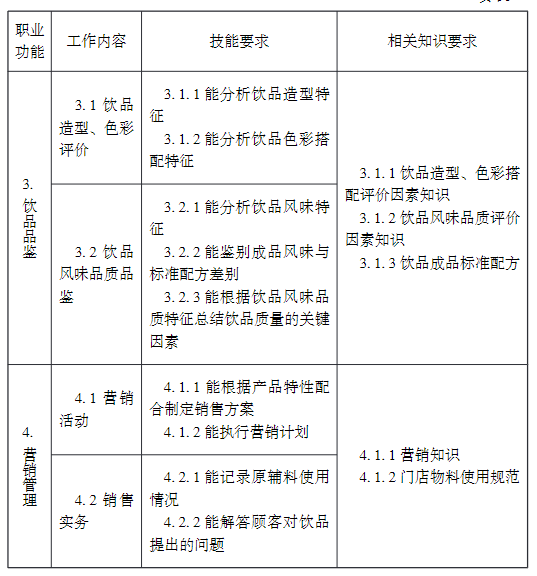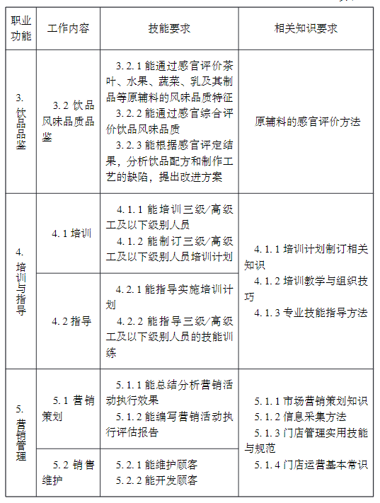 ①相關職業:茶藝師、咖啡師、調酒師、品酒師、飲料制作工、評茶員,下同。