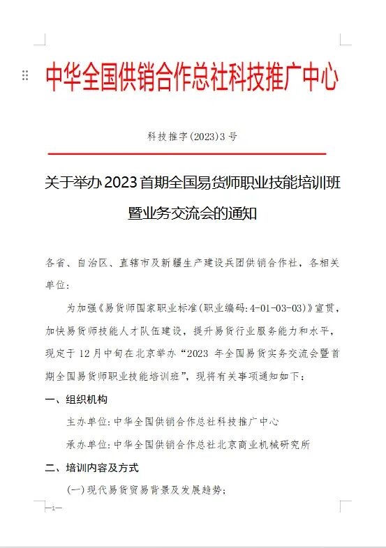 關于舉辦2023首期全國易貨師職業技能培訓班暨業務交流會的通知
