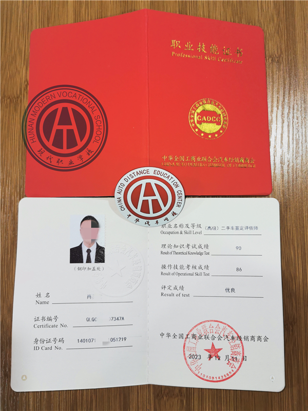 高級二手車鑒定評估師職業技能證書(紅色)