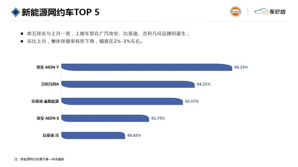 從數據來看,2月份出行市場最受歡迎的車型是廣汽埃安AION Y,保值率達66.23%。吉利幾何A排名第二,保值率比AION Y稍低,達64.21%。埃安AION S也躋身到新能源網約車市場榜單第四,保值率為61.75%。比亞迪秦新能源、比亞迪漢分列第三、第五,兩者保值率均超60%。