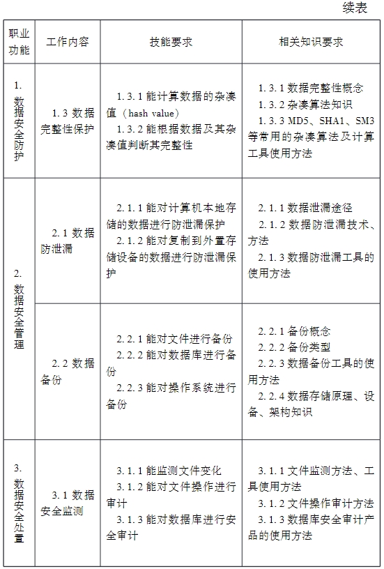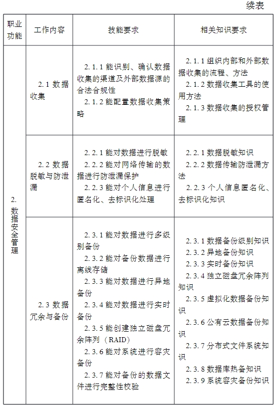 網絡與信息安全管理員(數據安全管理員) 國家職業標準(2024年版)