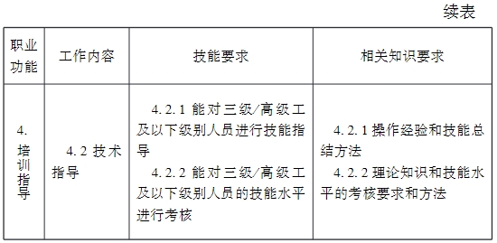 本標準對四級/中級工、三級/高級工、二級/技師、一級/高級技師的技能要求和相關知識要求依次遞進 ,高級別涵蓋低級別的要求。