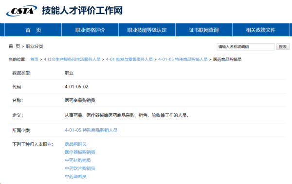 醫藥商品購銷員是國家勞動和社會保障部明確規定必須持證上崗的90種工種之一。醫藥商品購銷員共設三個等級,分別為:初級(國家職業資格五級)、中級(國家職業資格四級)、高級(國家職業資格三級)。