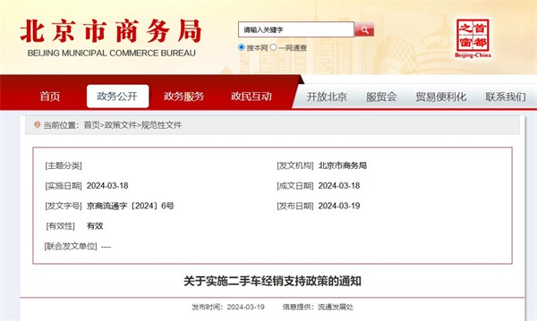 北京市商務局:關于實施二手車經銷支持政策的通知