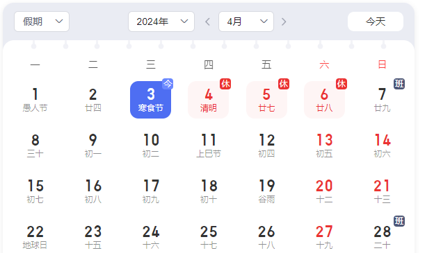 1、清明節4月4日(星期四)至4月6日(星期六)放假3天,于4月7日(星期日)起正式上班。