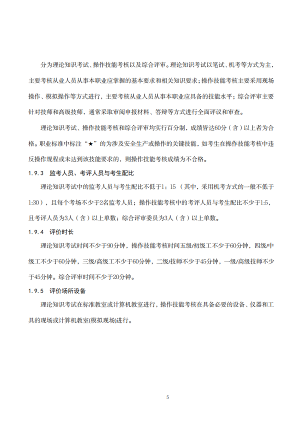 本職業共設五個等級,分別為:五級/初級工、四級/中級工、三級/高級工、二級/技師、一級/高級技師。