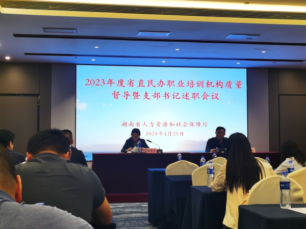 為進一步加強對省直民辦職業培訓機構和項目的監督管理,提升培訓質量和效果,4月25日下午,在長沙召開2023年度省直民辦職業培訓機構質量督導暨支部書記述職會議。省廳職建處處長劉旸、副處長汪蓉蓉、四級調研員成春陽出席會議,湖南現代職業培訓學校校長易猛作為省直民辦職業培訓機構負責人應邀出席。