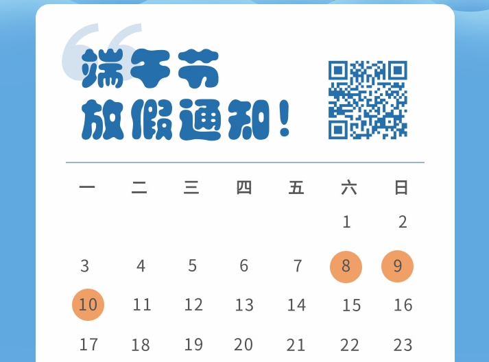 ★2024年端午節放假安排:國務院辦公廳通知精神,端午節放假時間為6月8日(星期六)至6月10日(星期一)共放假3天。6月11日(星期二)正式上班。