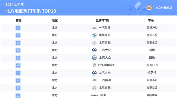 從上榜品牌看,德系豪華品牌成為南北方二手車市場的暢銷貨,寶馬、奔馳、奧迪旗下車型均有上榜。由于在華市占率每況愈下,日系車在南北方地區肉眼可見的低迷,僅有日產、本田上榜。