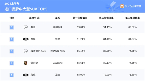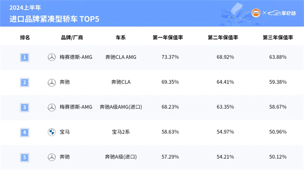 各國別的排名情況變化不大,但整體保值率有較大變動。榜單中僅有德系與日系保值率超60%,但與同期相比,德系、日系分別下滑2.86%、9.84%。國產沒有突破60%,韓系為54.78%。榜單下游的英系、美系、法系表現較弱。