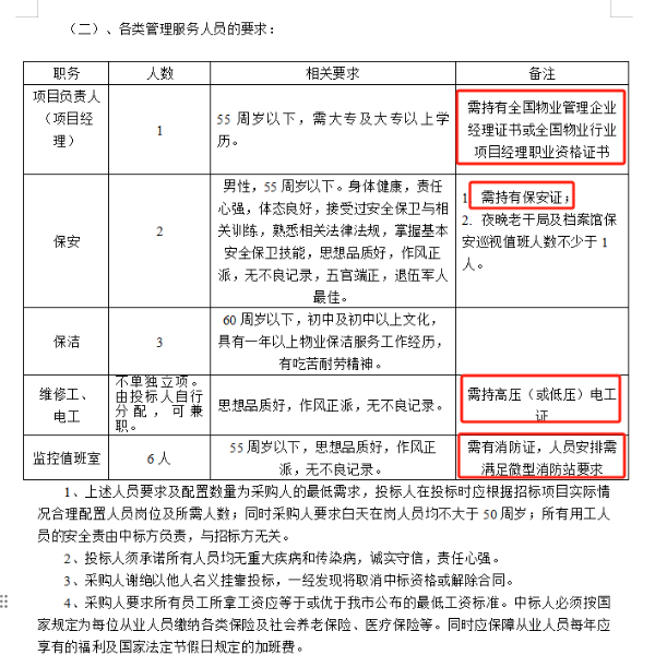 【物業招投標】鹽城市某區老干部局、檔案局物業招標人員配置與企業資質證書要求