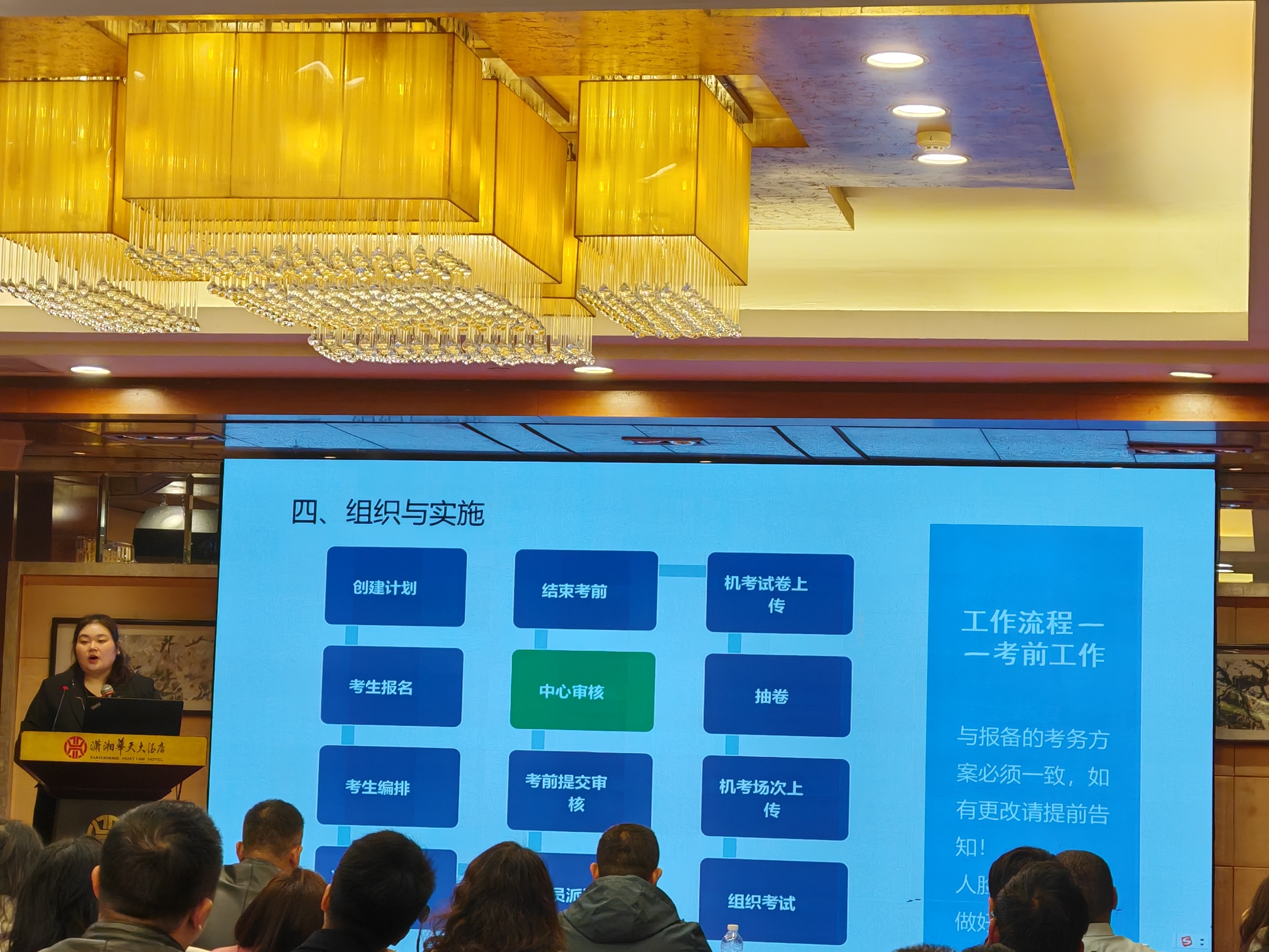 2024年11月29日,長沙市技能人才評價機構業務培訓會在長沙舉行,長沙市人社局黨組成員 副局長鄧勇、市職業技能鑒定中心主任李強、副主任蘇衛華、部長周良超等到場參會,我校作為湖南省直管培訓學校、職業技能等級認定單位,受邀參加本次培訓會議。