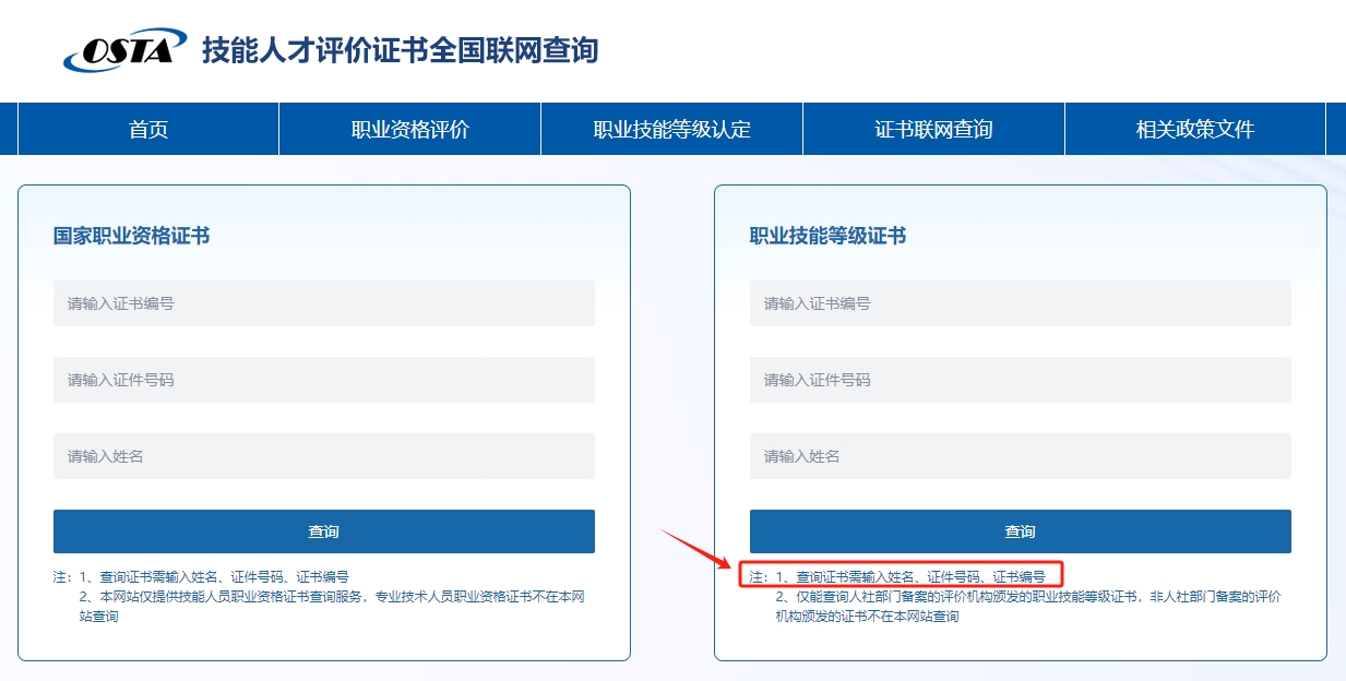 登錄“技能人才評價證書全國聯網查詢系統”(),輸入“證件號碼”“姓名”以及“證書編號”即可查詢。各位學員請認準真偽!