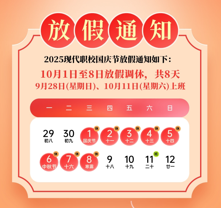 汽車網校中秋國慶2025年放假時間(具體調休)