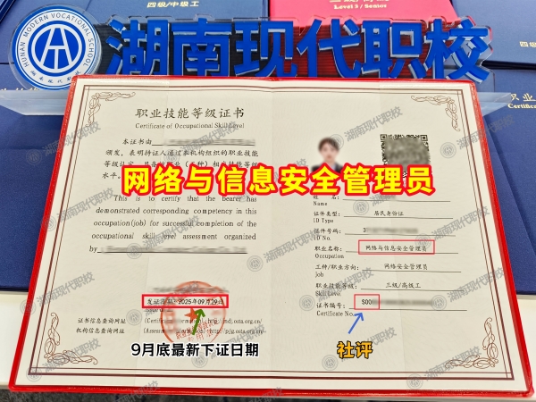 【證書下發】2025年10月,網絡與信息安全管理員職業技能等級證書順利下發到我校,此證書由通過人社部門評審并進行備案的第三方機構頒發,證書全國通用,國網可查。