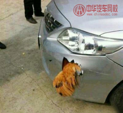 一只受驚的公雞撞上了一輛豐田佳美,雞沒事,車保險杠壞了