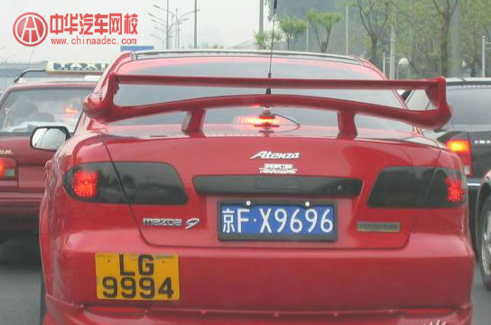 這輛馬自達6裝了一個RX-7的尾翼,卻貼著Mazda9的標志,車尾還有一京一港兩張牌照,這到底是何方神圣?