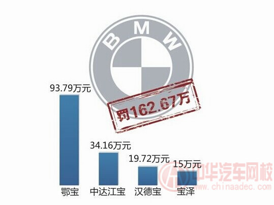 昨日,湖北物價局召開了規范汽車銷售中的價格行為提醒告誡會,參與會議的除以上受罰的寶馬4s店,還包括奔馳、大眾、斯柯達、雪佛蘭、別克等品牌汽車在武漢市場的部分4S店。會上,省物價局通報了武漢4家寶馬4S店協商統一收取PDI檢測費構成價格壟斷協議的違法行為,并依據《反壟斷法》,對鄂寶、中達江寶、漢德寶、寶澤4家寶馬4S店分別下達了93.79萬元、34.16萬元、19.72萬元和15萬元的行政處罰事先告知書,開出總計162萬元的罰單,這是反壟斷調查自7月持續發酵以來,汽車行業開出的第一張罰單。